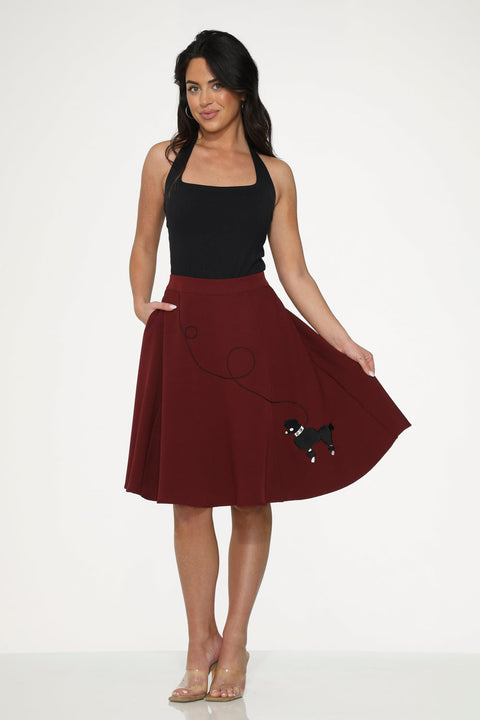 Bordeauxrode en zwarte geborduurde poedel swingrok