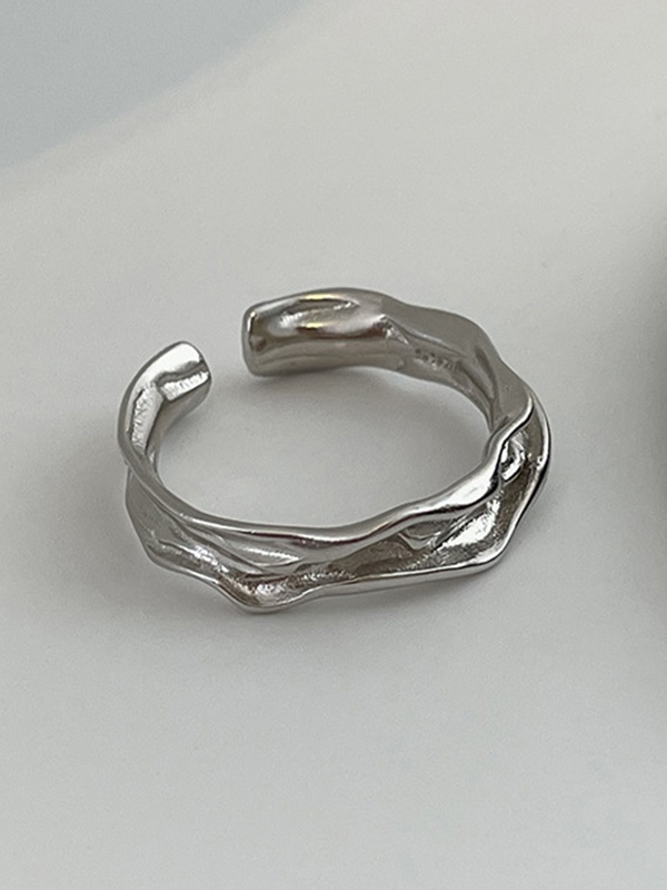 2-teiliger silberner strukturierter Manschettenring für Herren