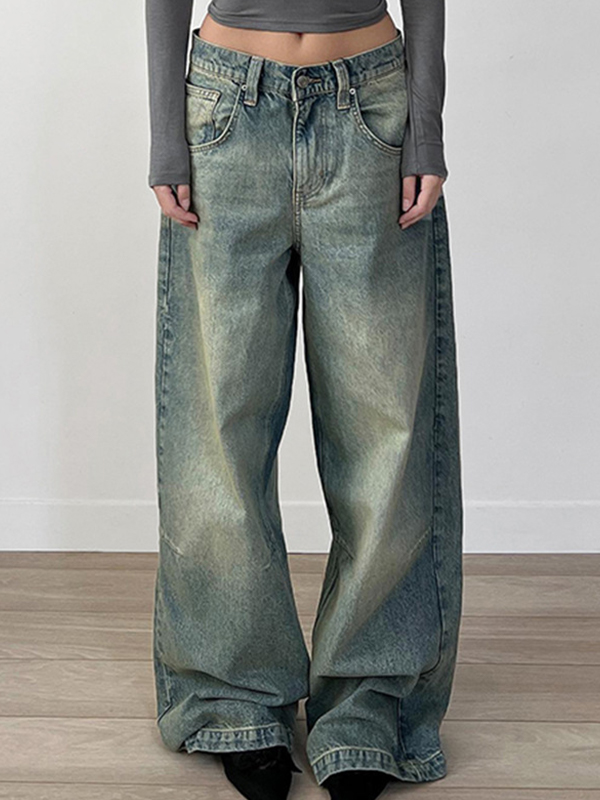 Lockere Vintage-Jeans mit verwaschener Bügelfalte