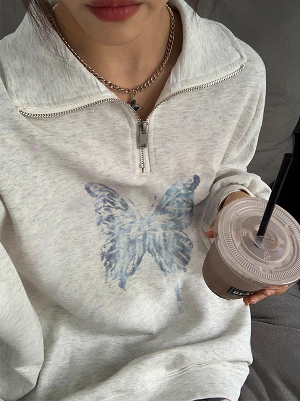 Übergroßer Kapuzenpullover mit Schmetterlings-Graffiti-Print