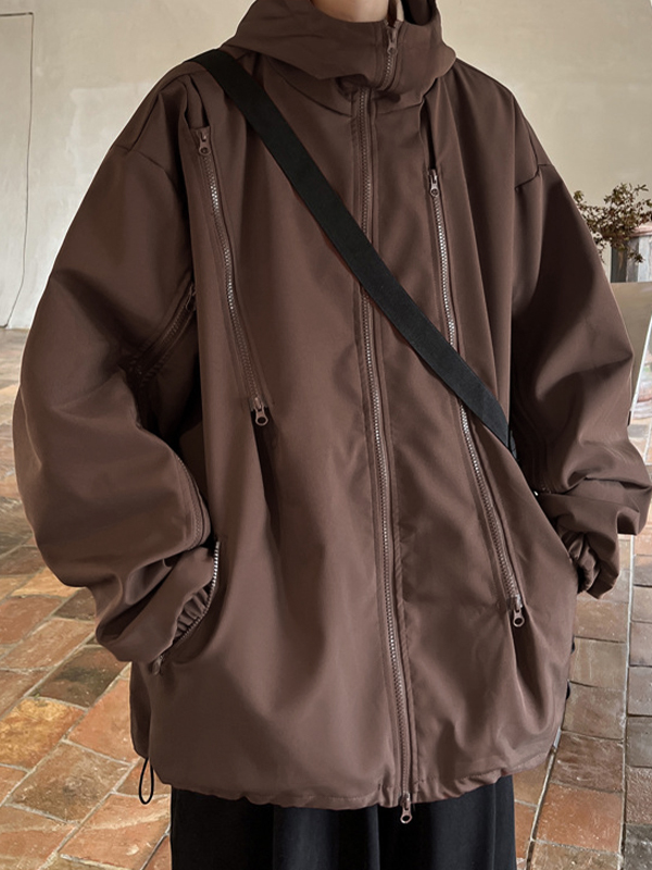 Gorpcore Solid Zipper Kordelzugjacke für Herren