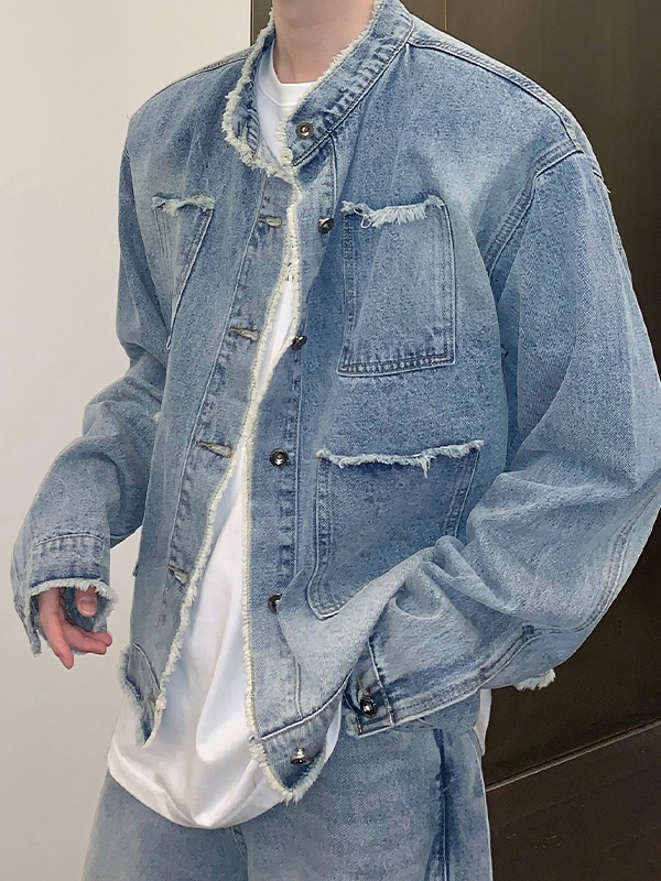 Herrenjacke im Distressed-Ombre-Stil mit Fransenbesatz