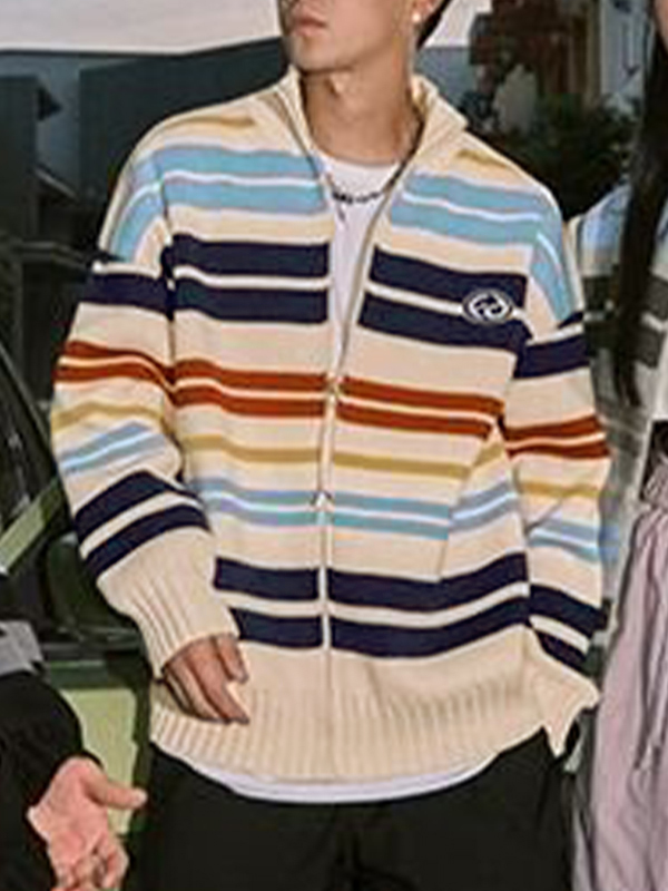 Übergroße Strickjacke für Herren mit bunten Streifen