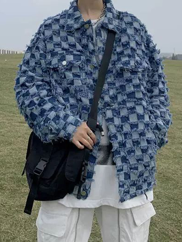 Vintage-Jeansjacke mit kariertem Reverskragen für Herren