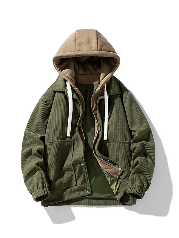 Herren-Cord-Jacke mit Kapuze und Reißverschluss in Kontrastfarbe
