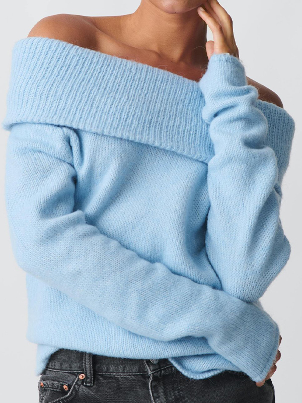 Einfarbige, schulterfreie, übergroße Pullover