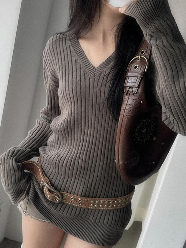 Retro-Strickwaren mit V-Ausschnitt und langen Ärmeln