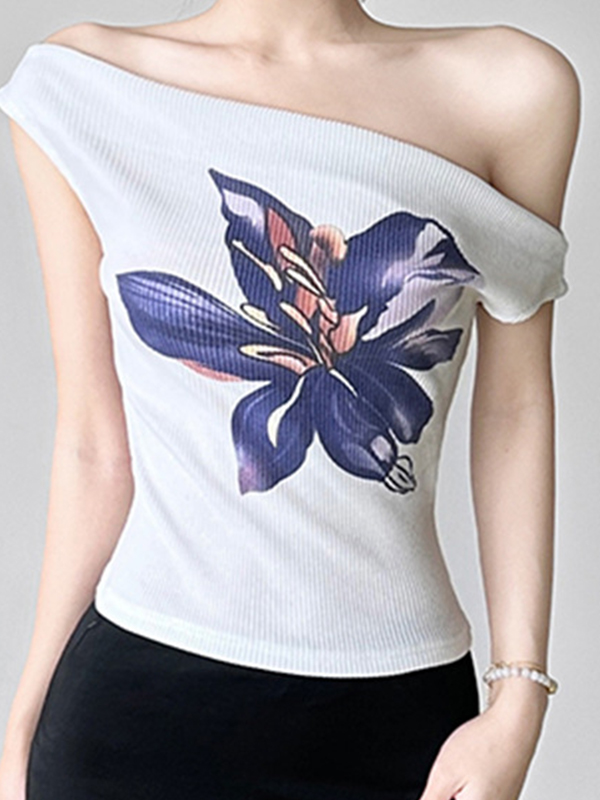 Kurzarm-T-Shirt mit One-Shoulder-Print