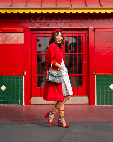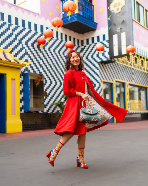 Vier Chinees Nieuwjaar 2025 met onze feestelijke transparante sokken met het thema ‘Jaar van de Slang’. De sokken zijn versierd met twee gele slangen met bloemenpatronen in rood en turquoise, die in elkaar verstrengeld zijn tot een abstracte hartvorm en omringd worden door turquoise takken en grotere bloemen. Deze sokken zien er van de zijkant net zo prachtig uit als van de voorkant, waardoor ze een onvergetelijke blikvanger zijn. Combineer ze met rode hakken voor de perfecte look voor Chinees Nieuwjaar. Eén maat. Aanbevolen voor damesschoenmaten 5,5-9 (VS). 200 naalden. Trendy maar elegant – geen gekke of kinderachtige patronen. Premium kwaliteit – duurzaam gemaakt met comfortabele stretch. Uniek – het perfecte accessoire om je outfits een persoonlijk tintje te geven.