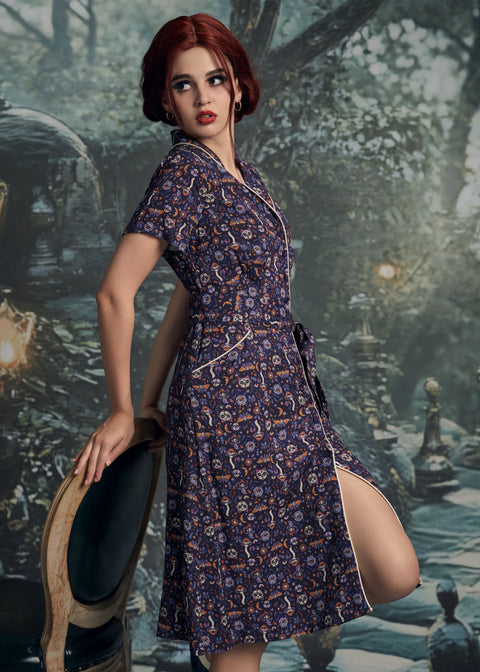Maak kennis met onze vintage-geïnspireerde overhemdjurk van het gelijknamige label ModCloth. Deze jurk combineert tijdloze charme met comfort voor de hele dag en heeft een elegant silhouet. Gemaakt van een lichtgewicht geweven stof, valt de jurk soepel om het lichaam en ademt de charme van de jaren 40 en 50. De jurk heeft een ronde reverskraag, subtiele biezen, een volledige knoopsluiting aan de voorkant, een afneembare ceintuur en schuine zakken aan de voorkant op de heupen. Met zijn stijlvolle, comfortabele pasvorm en de extra aantrekkingskracht van een bloemenprint is deze jurk een veelzijdige en verfijnde keuze voor elke gelegenheid, en voegt een vleugje vintage-geïnspireerde elegantie toe aan je garderobe.