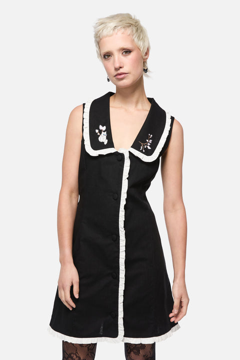 Schatje, je maakt een grapje, toch De Catkins Ruffle Pinny van Dangerfield is misschien wel de schattigste pinafore die we ooit hebben gezien. Met zijn op een dienstmeisje geïnspireerde silhouet, contrasterende ruches en custom ‘Catkins’-borduurwerk is deze lange, getailleerde pinafore perfect voor vrouwen, fashionplay en cosplay-momenten. Kanten details en een gevormde kraag maken het geheel af met precies de juiste dosis kitsch.