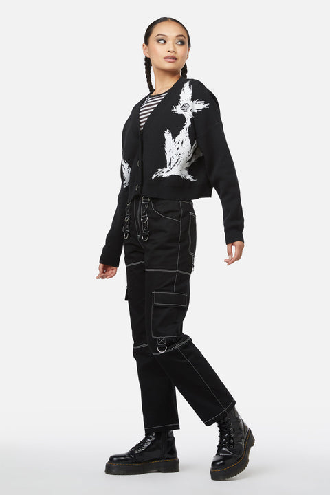 Kruip lekker weg in de betoverend knusse wereld van het ‘Kitty’ Intarsia Cardigan van Black Friday – een knus meesterwerk dat op speelse wijze warmte combineert met een speelse charme. Gemaakt van een behaaglijke mix van nylon en acryl, omhult dit vest je met een zachte omhelzing waar je niet meer uit wilt. De boxy snit en relaxte pasvorm zorgen voor een ontspannen look, perfect voor een weekendje loungen, creatieve brainstormsessies of een gezellig koffiedate met vrienden. De knoopsluiting aan de voorkant geeft een klassieke touch en maakt het gemakkelijk om het vest over je favoriete T-shirts of jurken te dragen. Het schattige ‘kitty’ intarsia-kunstwerk, geweven in een monochrome kleurenpalette, voegt een vleugje ondeugendheid toe, waardoor het een heerlijke aanwinst is voor de garderobe van elke kattenliefhebber. Of het nu een frisse avondwandeling is of een gezellige avond thuis, dit zwarte Intarsia-vest belooft warmte, comfort en een snufje plezier.