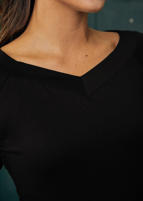 Laat je innerlijke filmster los met de Ready for a Roman Holiday Top van ons eigen ModCloth-merk. Deze elegante zwarte top is gemaakt van een zachte katoen-elastaanmix en sluit perfect aan, terwijl de inkeping in de halslijn een vleugje retro-drama toevoegt. Met lange mouwen en een veelzijdig silhouet is het een echte kameleon in je garderobe – even geschikt voor een avondje cafébezoek als voor een wijde broek voor avonturen op de scooter. Audrey Hepburn zou het goedkeuren.