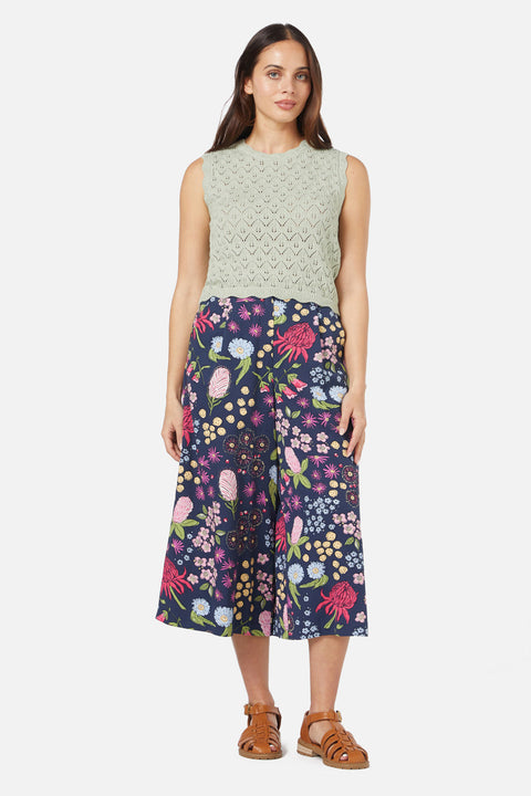 Zacht, lief en moeiteloos vintage – de Lana Pointelle Knit Top van Princess Highway is een dromerige aanwinst voor je garderobe. Deze saliegroene en crèmekleurige beauty is gemaakt van een delicate pointelle-breistof met ruitpatroon en voegt een vleugje nostalgische charme toe aan elke outfit. Met een ronde halslijn, cropped lengte en mouwloos model is hij perfect om te combineren met andere kledingstukken of om op zonnige dagen los te dragen. De geschulpte rand langs de halslijn, armsgaten en zoom geeft een verfijnde, vrouwelijke touch, waardoor deze top net zo betoverend is als een wandeling door een bloemenweide. Combineer hem met een rok met hoge taille of een linnen broek voor een luchtige, vintage-geïnspireerde look. Materiaal: 100% katoen. Wasvoorschriften: Voorzichtig met de hand wassen in koud water | Binnenstebuiten wassen | Plat laten drogen | Niet in de droger doen.