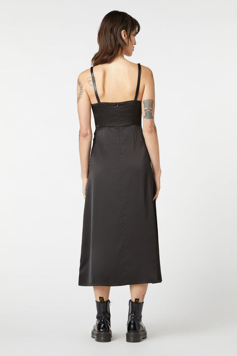 Deze jurk is gemaakt van luxueus polyester satijn met een vleugje elastaan ​​en voelt glad en zijdezacht aan, waardoor hij prachtig valt. De verborgen ritssluiting aan de achterkant zorgt voor een naadloze look, waardoor je de jurk gemakkelijk aantrekt.