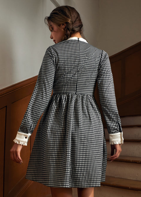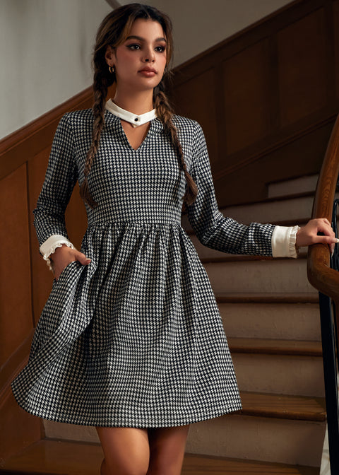 Maak je look compleet met de Houndstooth and Nail Dress van ons eigen ModCloth-merk. Deze prachtige jurk met een aansluitende taille en uitlopende rok heeft een tijdloze zwart-witte pied-de-pouleprint, geaccentueerd door een keyhole-halslijn en een frisse witte contrasterende kraag met knoopdetails. De ruches aan de manchetten geven een speelse twist, terwijl de verborgen zijzakken voor dagelijks praktisch gebruik zorgen. Combineer hem met een panty en loafers voor een outfit die geschikt is voor op kantoor, of met hakken en rode lippenstift voor een instant retro-look.