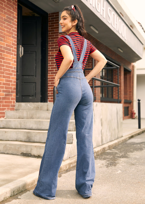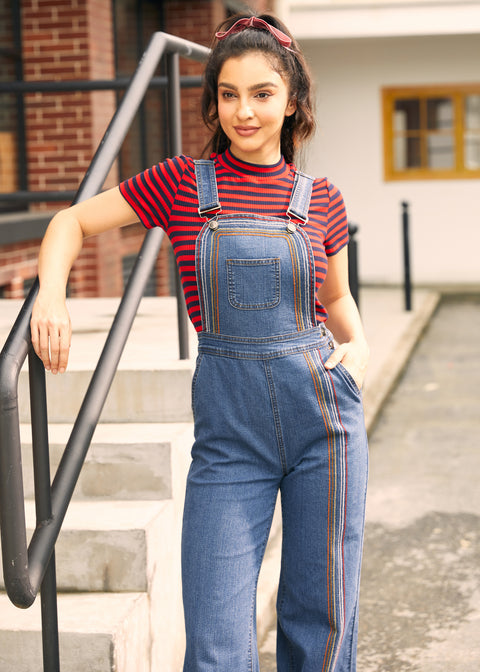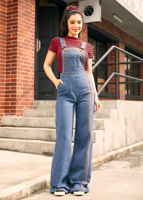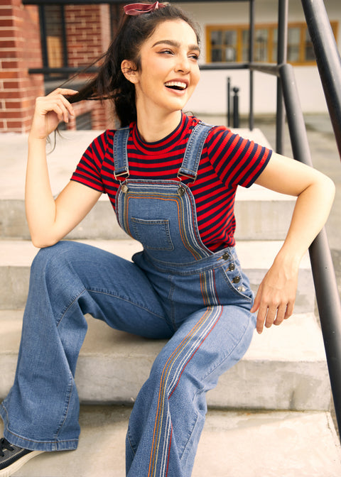 Maak een rondje op de rolschaatsbaan in deze regenboogkleurige, vintage-geïnspireerde overall van ons ModCloth-label! Deze blauwe, wijde broek is gemaakt van licht elastisch denim en heeft handige zijzakken, verstelbare schouderbanden met gespen en borduurwerk van de borst tot aan de zoom, zodat je de rolschaatsbaan in kleur kunt domineren!