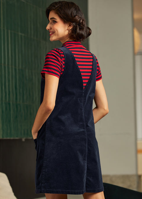 Retro Radiance V-hals corduroy jurk