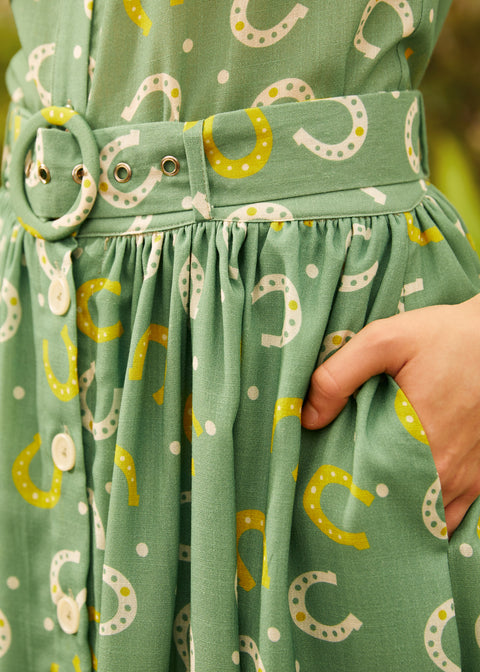 Geniet van de gouden uren van de lente in onze Meadow Step rok van het gelijknamige ModCloth-merk. Deze charmante groene rok met hoefijzerprint is gemaakt van een comfortabele geweven stof en heeft praktische zakken en een handige knoopsluiting. De rok valt soepel over het hoofd aan, waardoor hij perfect is voor een picknick in het park of een ontspannen wandeling in het weekend. Machinewasbaar. Buitenstof: 75% polyamide, 25% viscose. Voering: 100% viscose. Lengte: 80 cm. Geïmporteerd. Model draagt ​​maat S (VS). Afmetingen model: Lengte 173 cm / Borst 91 cm / Taille 69 cm / Heupen 102 cm.