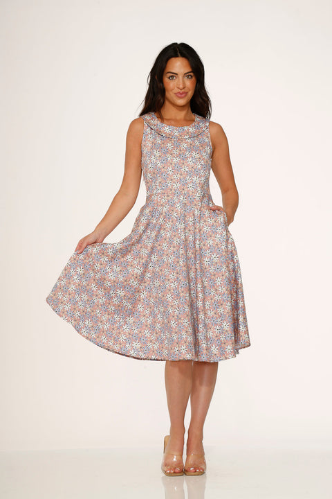 Stap in de wereld van moeiteloze charme met de Pink Daisy Floral Swing Dress van Orchid Bloom. Deze jurk, uitgevoerd in een zachtroze tint met delicate madeliefjesprints, combineert vintage-geïnspireerde elegantie met modern comfort. Perfect voor een wandeling in de tuin, een brunch of elke andere gelegenheid die vraagt om een vleugje romantiek en gratie. Materiaal: 97% katoen, 3% spandex. Stretch: De stof is comfortabel rekbaar. Sluiting: Ritssluiting middenachter voor gemakkelijk aantrekken. Kenmerken: Zijzakken voor extra gemak. Lengte: 104 cm. Herkomst: Geïmporteerd.