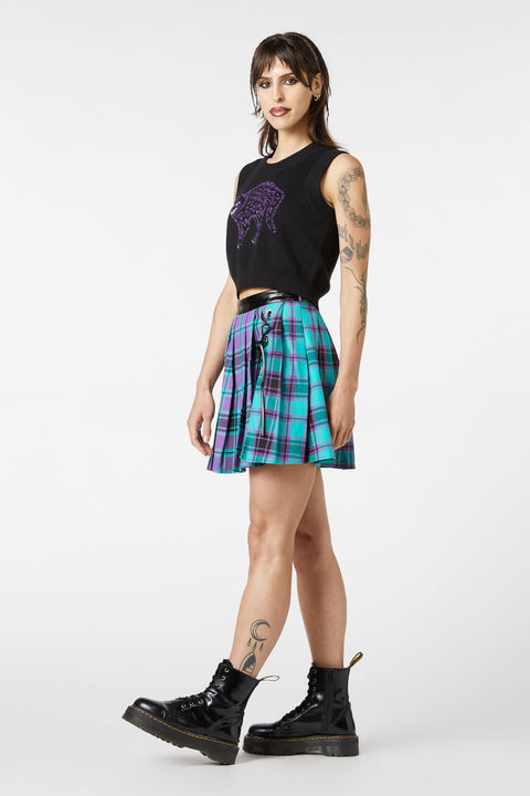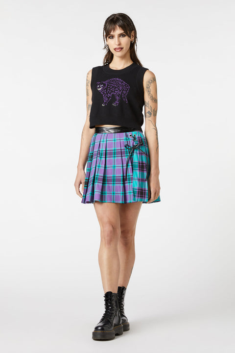 Stap de schaduwen in met een ondeugende twist in de Grinning Cat Placement Sweater van Dangerfield. Deze op gothic geïnspireerde mouwloze gebreide trui is gemaakt van zacht 100% katoen en biedt zowel comfort als een stoere uitstraling. De ronde halslijn en cropped lengte zorgen voor een flatterend silhouet, terwijl het opvallende grijnzende kattendesign op de voorkant een vleugje griezelige charme toevoegt. Stof: 100% katoen. Wasvoorschriften: Voorzichtig met de hand wassen in koud water | Niet bleken of weken | Plat laten drogen | Strijken op lage temperatuur indien nodig.
