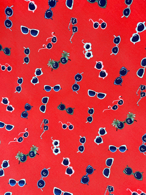 Een vintage-stijl item met leuke, moderne details in onze vrolijke zonnebrillenprint. Deze klassieke jurk, geïnspireerd op de jaren 50, is gemaakt van 100% katoen en heeft een hoge halslijn, een langere rok met verborgen zijzakken en een ritssluiting aan de achterkant.