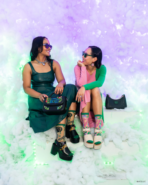 Vier de vriendschap tussen Glinda en Elphaba met onze Wicked: For Good doorschijnende sokken. Met bloemen, krullen en een symbool van een samengevoegde hoed en tiara in roze en groen, die de eeuwige band tussen Glinda en Elphaba symboliseren. De levendige bloemen op een witte, doorschijnende basis voelen speels maar tegelijkertijd krachtig aan. Deze sokken zijn even speels als ontroerend en vormen een draagbaar eerbetoon aan het verhaal van twee onwaarschijnlijke vriendinnen die elkaars leven voorgoed veranderden.