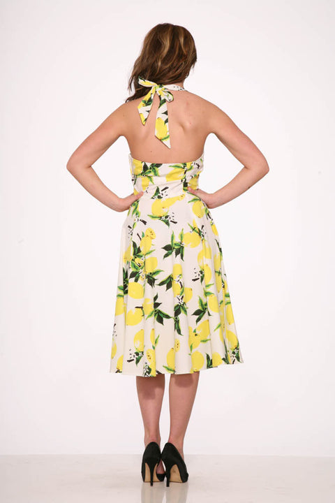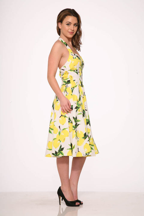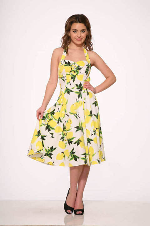 Als het leven je citroenen geeft, draag ze dan! De Orchid Bloom White Lemon Halter Swing Dress is een pittige, vintage-geïnspireerde blikvanger met een frisse citroenprint op een helderwitte achtergrond. Met zijn flatterende halterhals en wijde swingrok brengt deze jurk een vleugje zonneschijn bij elke draai. De katoen-spandexmix zorgt voor een heerlijke en comfortabele pasvorm, perfect voor picknicks, feestjes of gewoon om je dag op te fleuren.