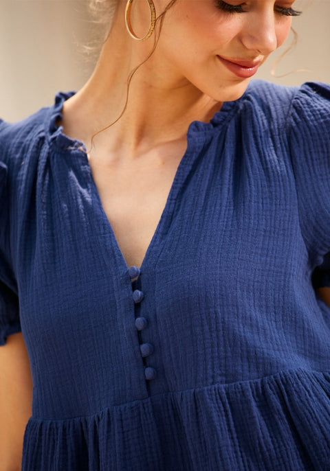 Duik in een vleugje marineblauw met deze schattige babydoll-jurk, rechtstreeks van ons eigen ModCloth-merk. Deze jurk heeft subtiele knoopjes op de borst, wat een speels accent geeft aan het mini-silhouet. De soepele stof en pofmouwen wapperen bij elke stap, waardoor het een droom is om te dragen op een luchtige dag of een informele bijeenkomst. De comfortabele pasvorm zorgt ervoor dat je je net zo goed voelt als je eruitziet. Of je nu over een weekendmarkt slentert of geniet van een dagje in het park, deze jurk is je ideale keuze voor een moeiteloos stijlvolle outfit.