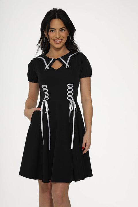 Zwart-wit afgewerkte gotische swingjurk