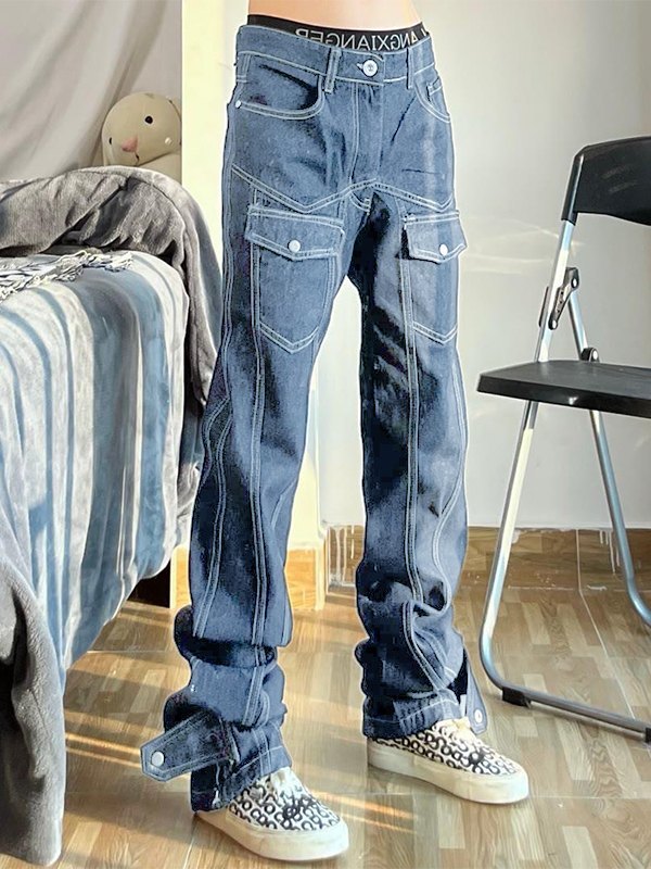 Herren-Patchwork-Cargo-Jeans mit geradem Bein