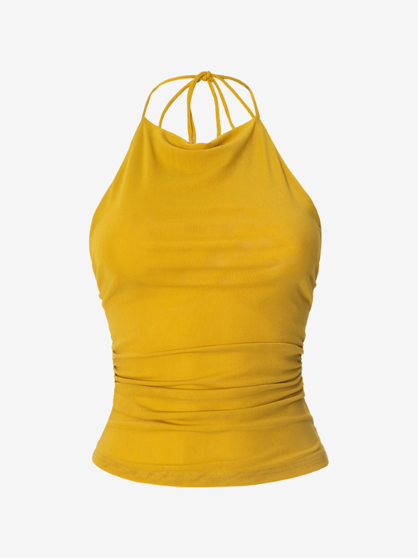 Einfarbige sexy rückenfreie Neckholder-Weste aus Netzstoff