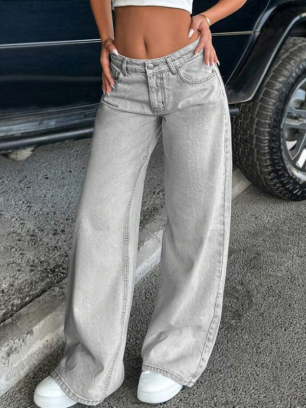 Ausgestellte Boyfriend-Jeans im Used-Look mit niedriger Taille