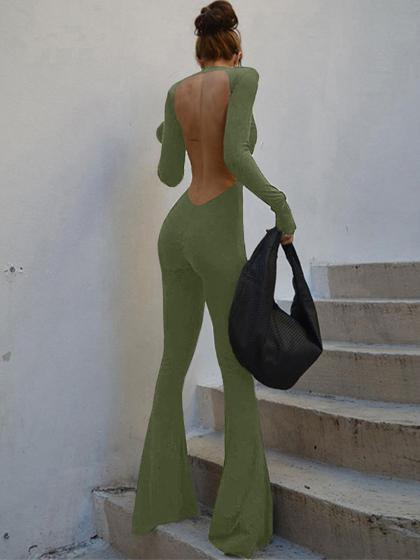 Rückenfreier Langarm-Jumpsuit mit ausgestelltem Bein
