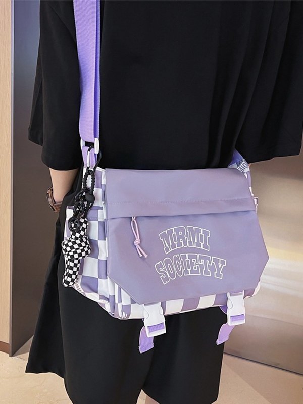 Umhängetasche aus kariertem Nylon mit Schnallenriemen