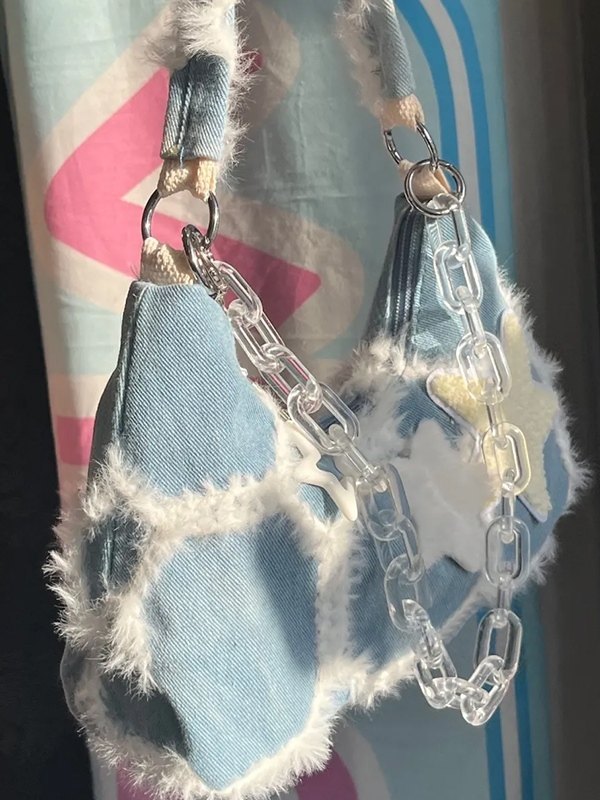 Sternkette verschönert Patchwork-Schultertasche mit Schnalle