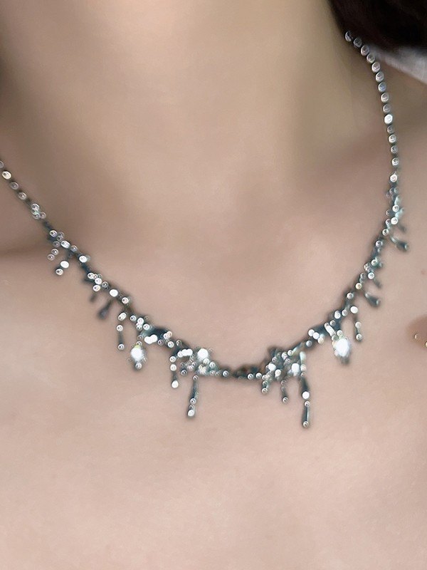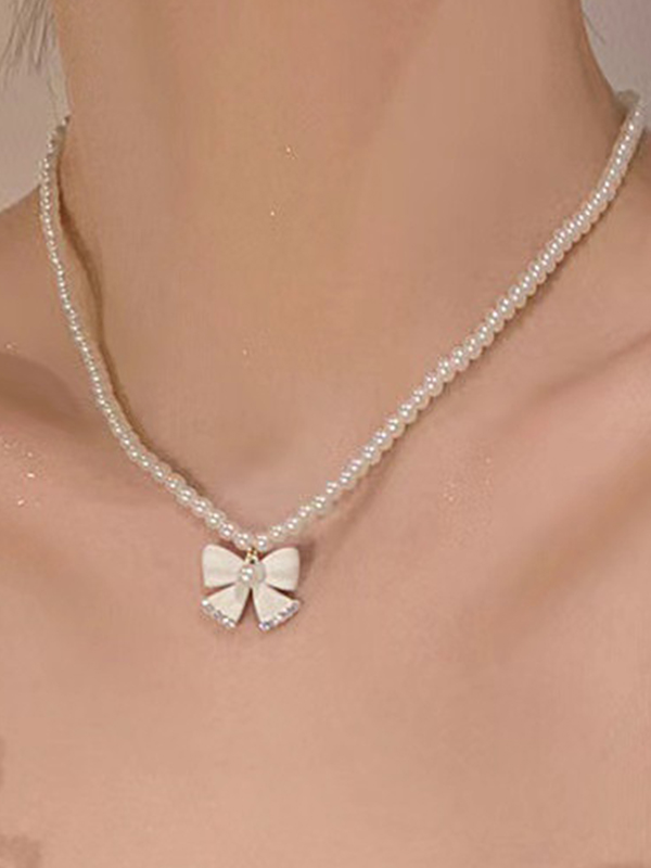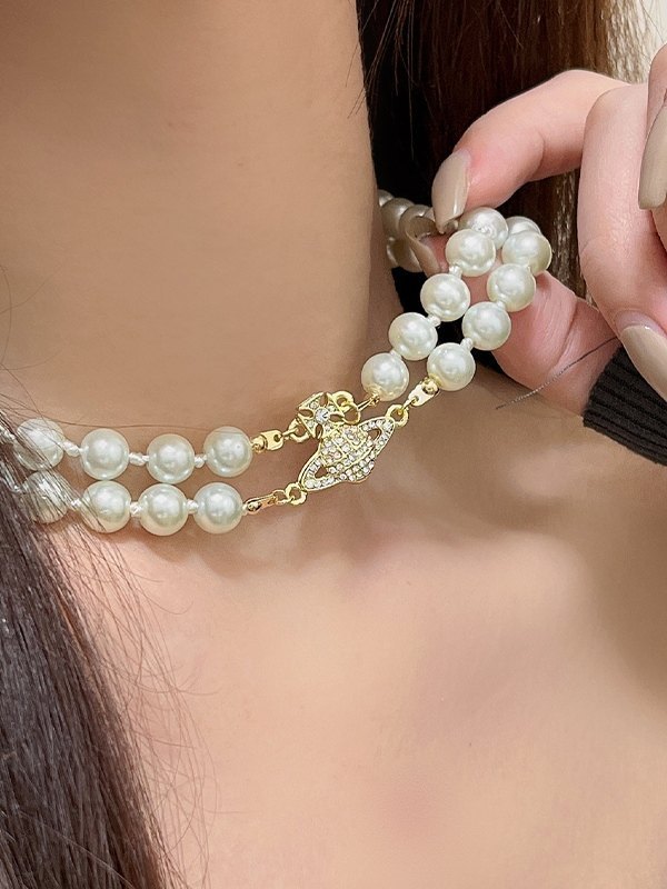 Doppellagige Faux-Perlenkette mit Strass-Charme