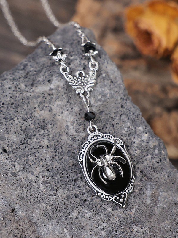 Halskette mit Anhänger aus schwarzem Spinnenstein