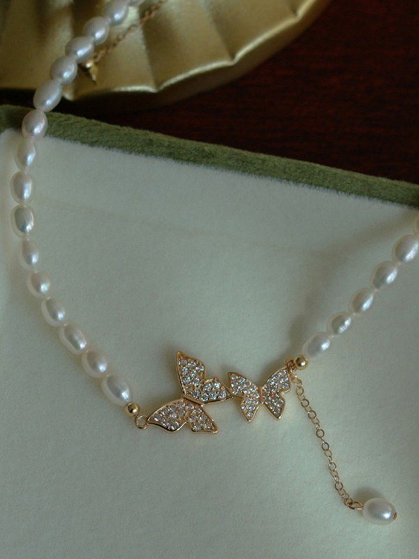 Strass-Schmetterlings-Faux-Perlen-Halskette