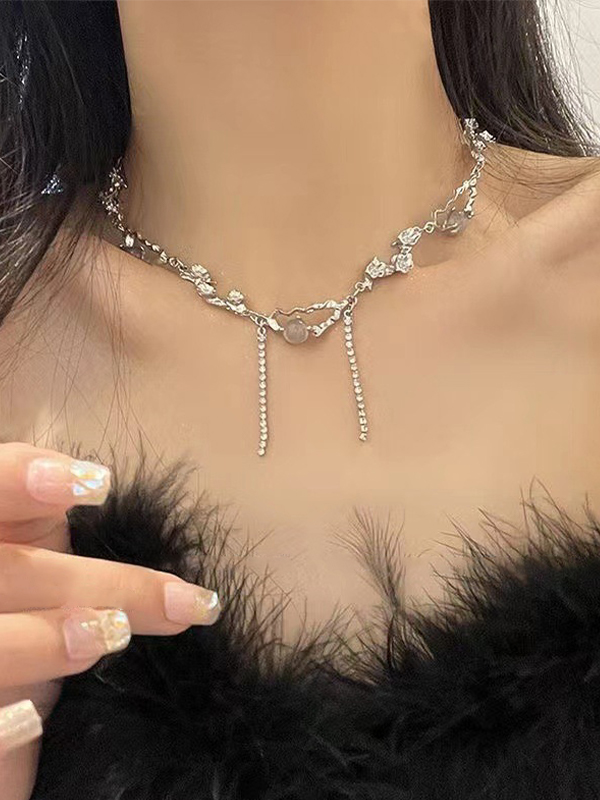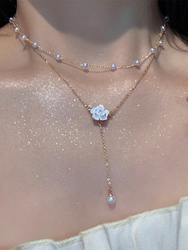 Doppellagige Halskette mit Perlen-Kamelien-Dekor