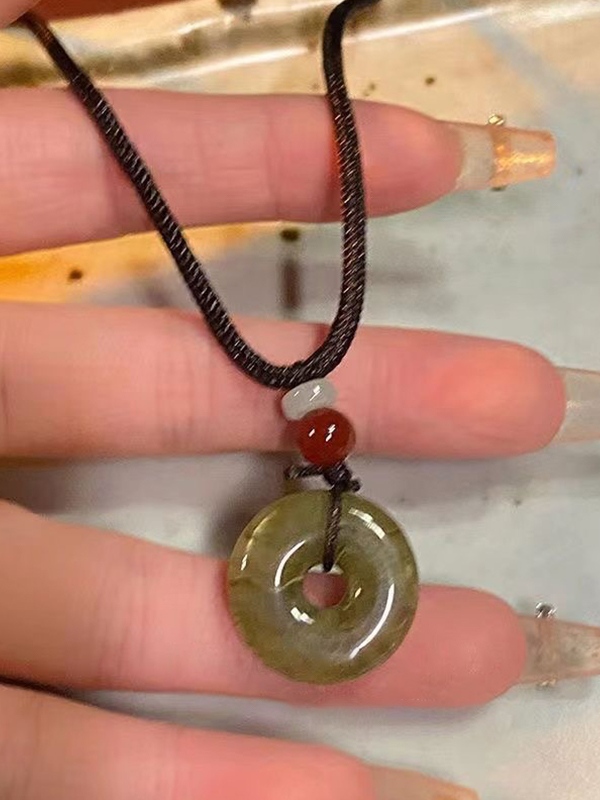 Halskette mit geflochtenem Seil und ausgehöhltem Jade-Anhänger