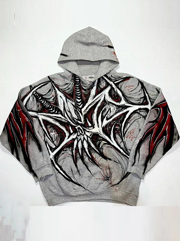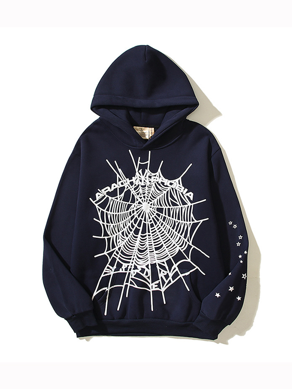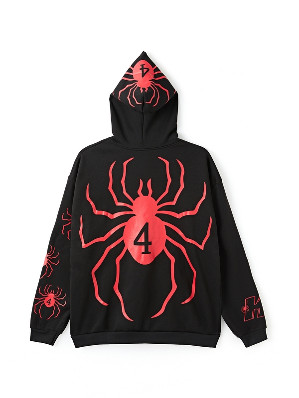 Kontrastfarbener Herren-Hoodie mit Spinnennetz-Print