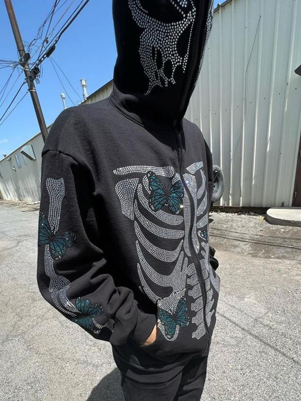 Übergroßer Hoodie mit Totenkopf-Print für Herren