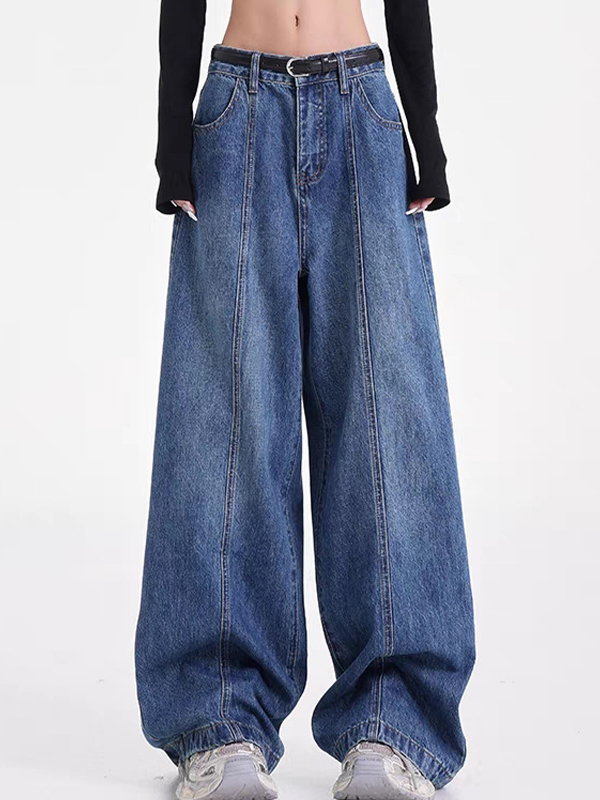 Lose Herrenjeans mit Vintage-Waschung und rohem Rand