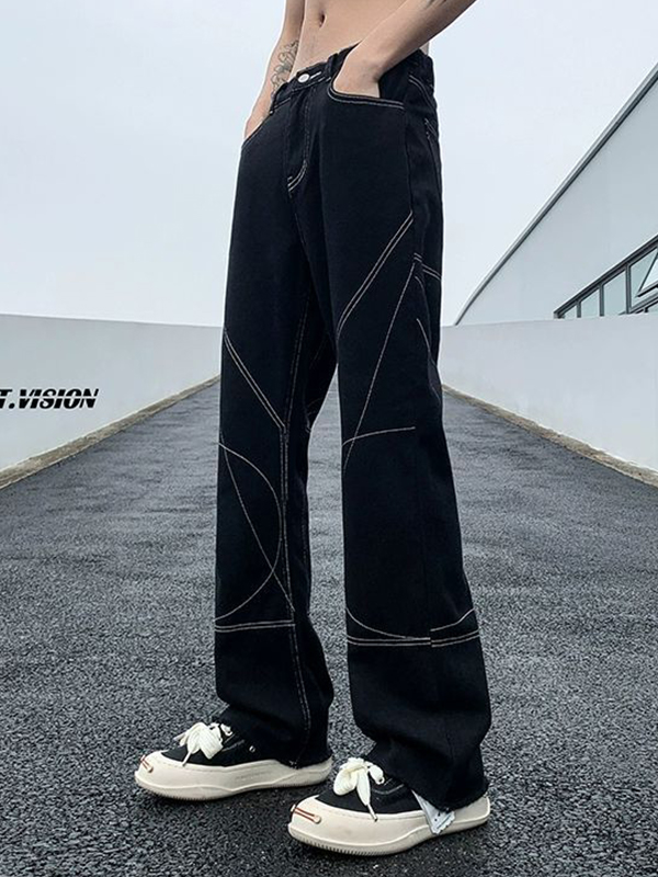 Genähte Distressed-Jeans mit geradem Bein für Herren