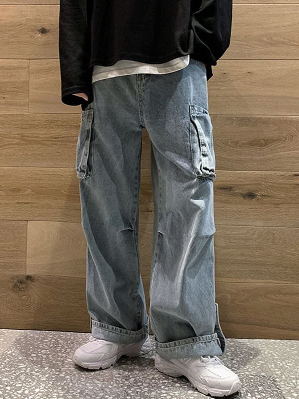 Lose Jeans mit gewaschenem Taschenaufnäher für Herren