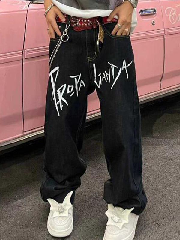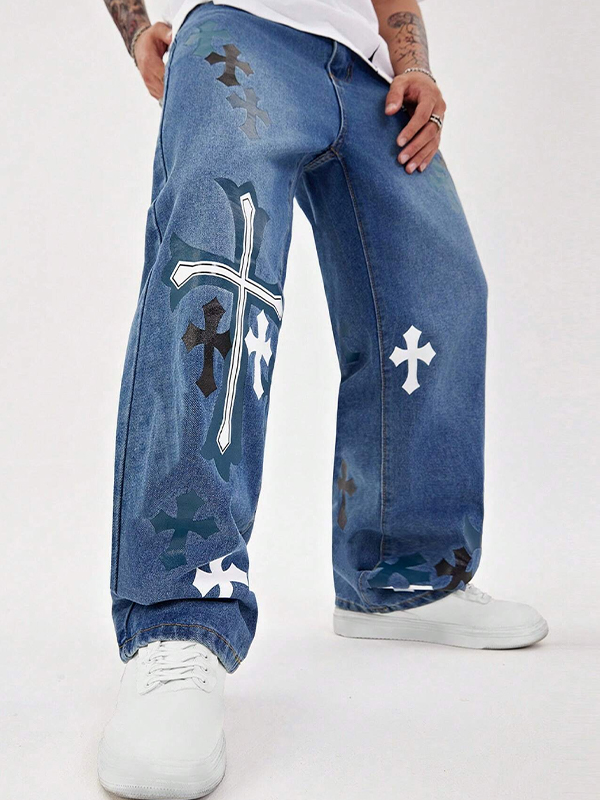 Lockere Jeans mit Clashing-Kreuz-Print für Herren