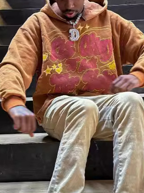 Übergroßer Kapuzenpullover mit Stern-Buchstaben-Print für Herren