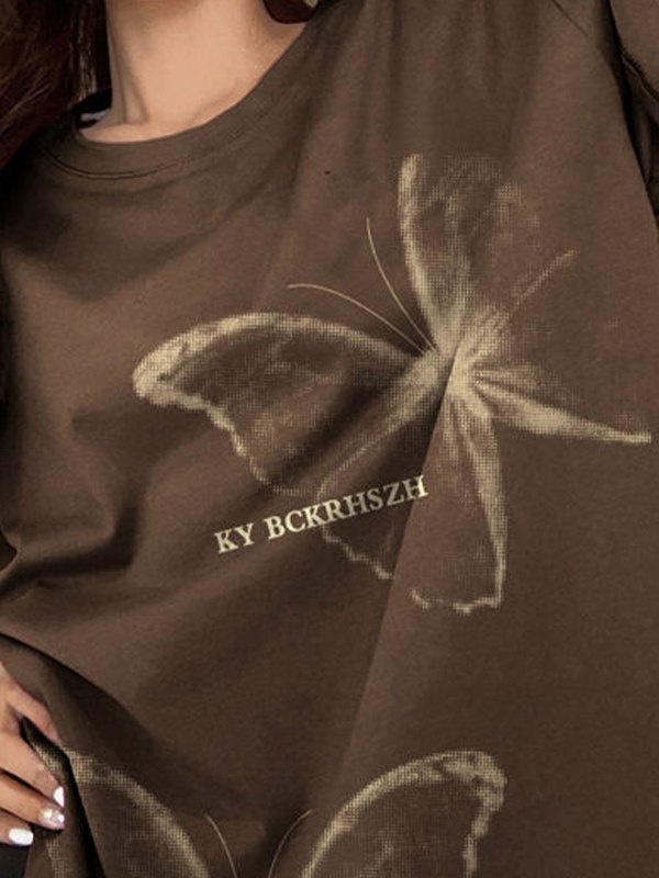 Übergroßes Kurzarm-T-Shirt mit Vintage-Schmetterlingsdruck