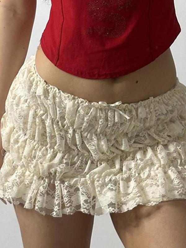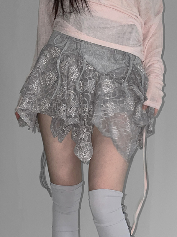 Mädchenhafter unregelmäßiger Minirock mit Spitzen-Patchwork